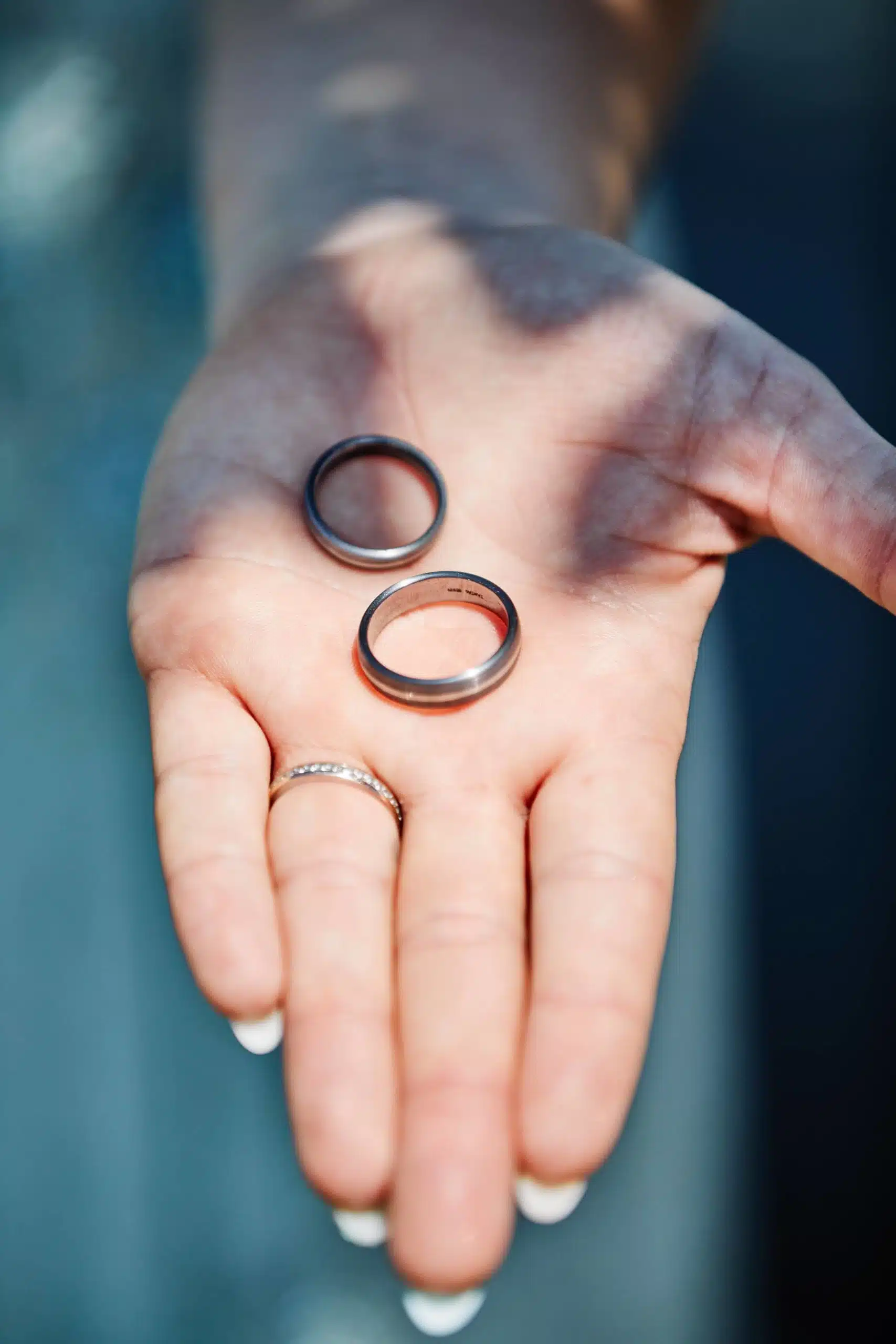 Nahaufnahmen der Ringe und der Dekoration dürfen auf keiner Hochzeit fehlen.